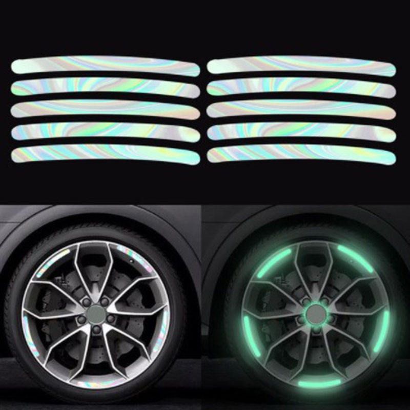 10PCS Car Wheel Fluorescent Stickers, Wheel Hub Reflective Warning Stickers for Electric Vehicles, Motorcycles, and Bicycles, Luminous Stickers for Night Visibility