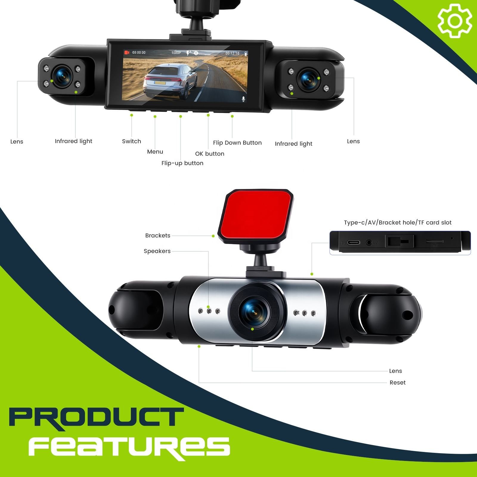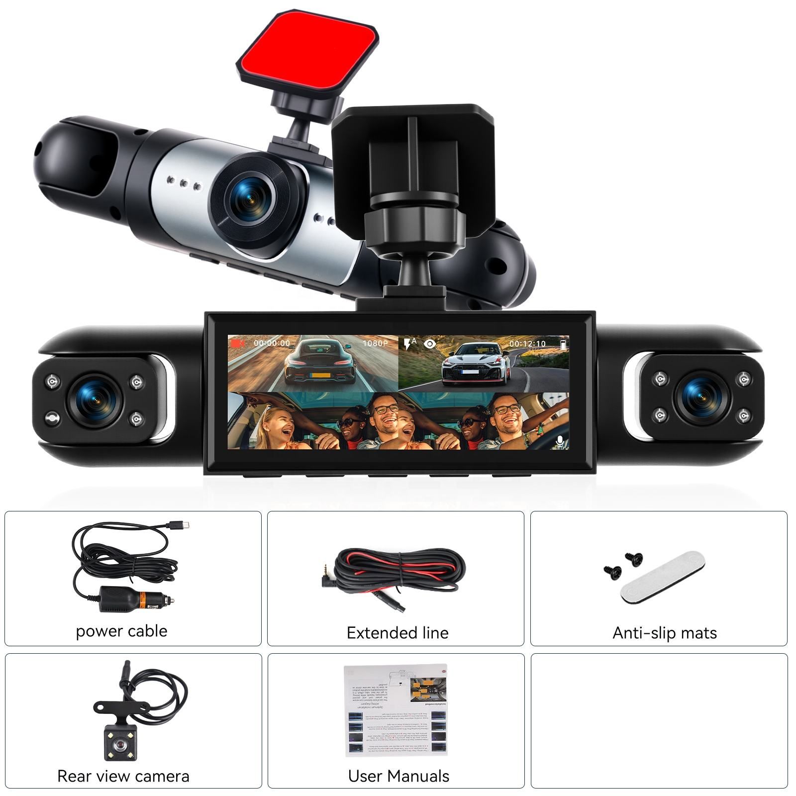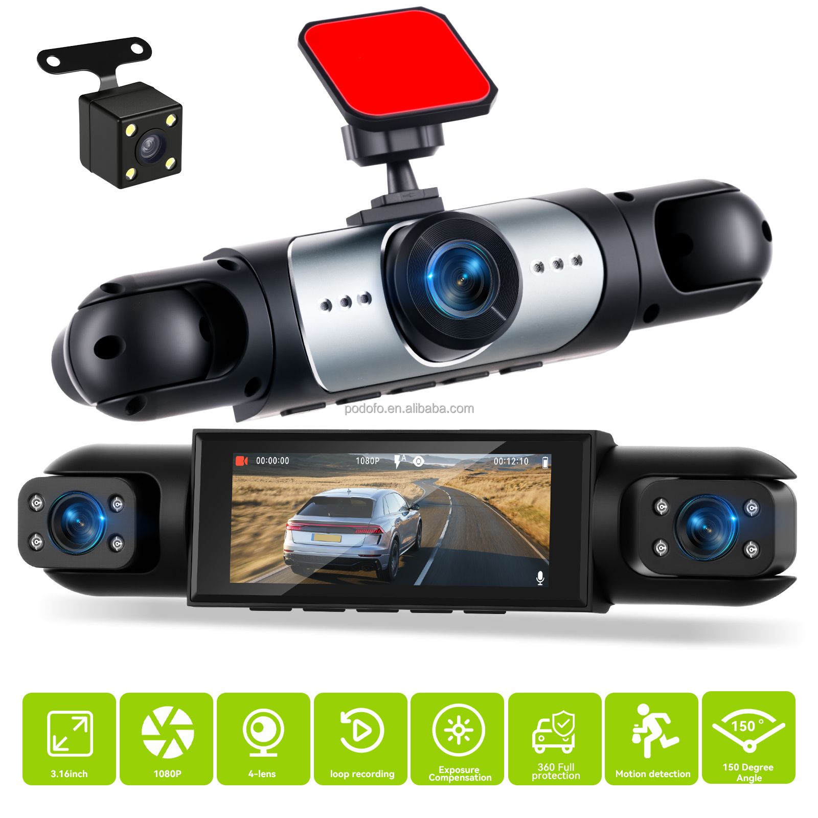 3.16-inch Dashboard Cam 1080P 4-Lens Digital Video Recorder Camera