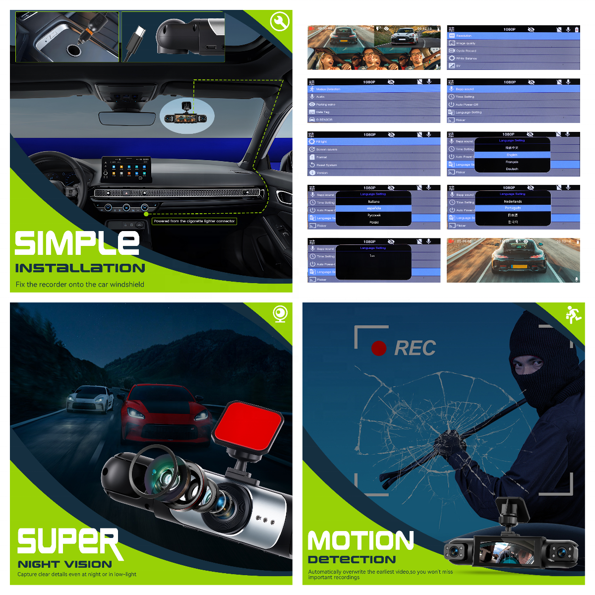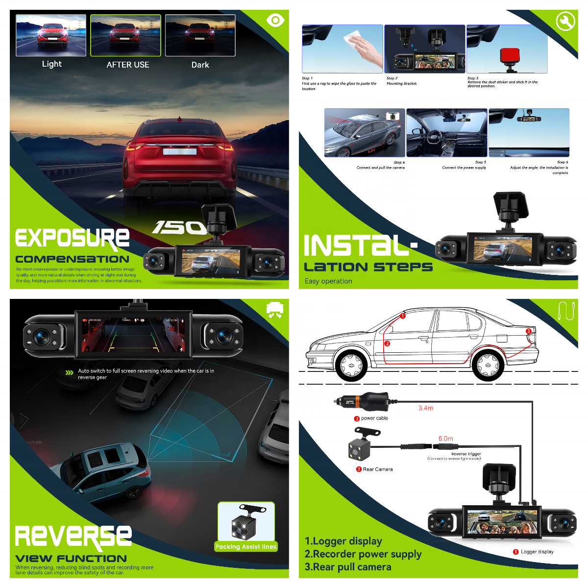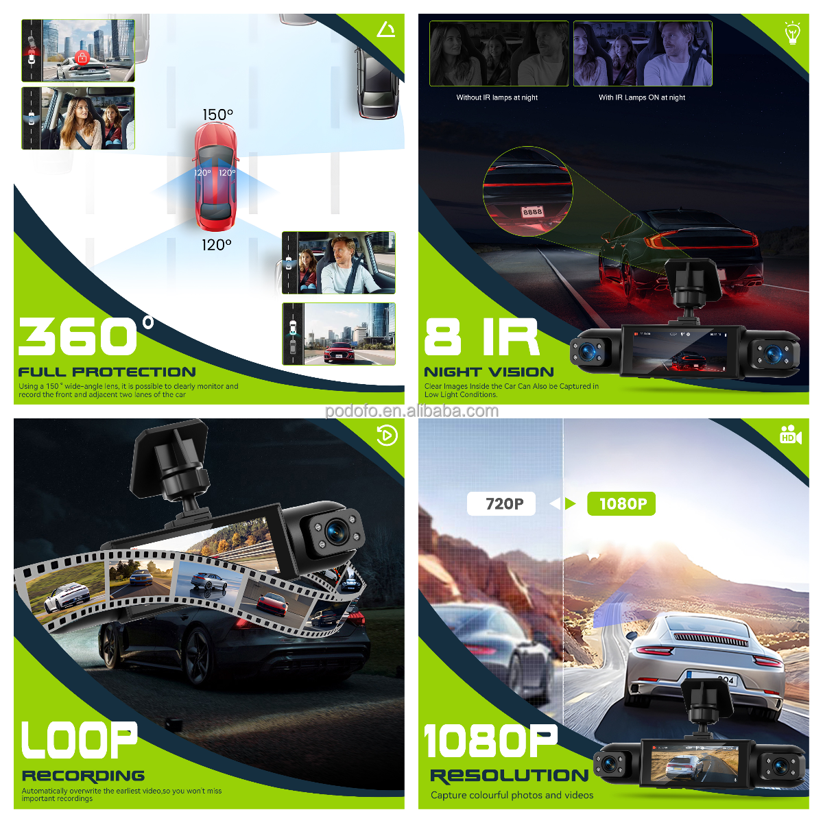 3.16-inch Dashboard Cam 1080P 4-Lens Digital Video Recorder Camera