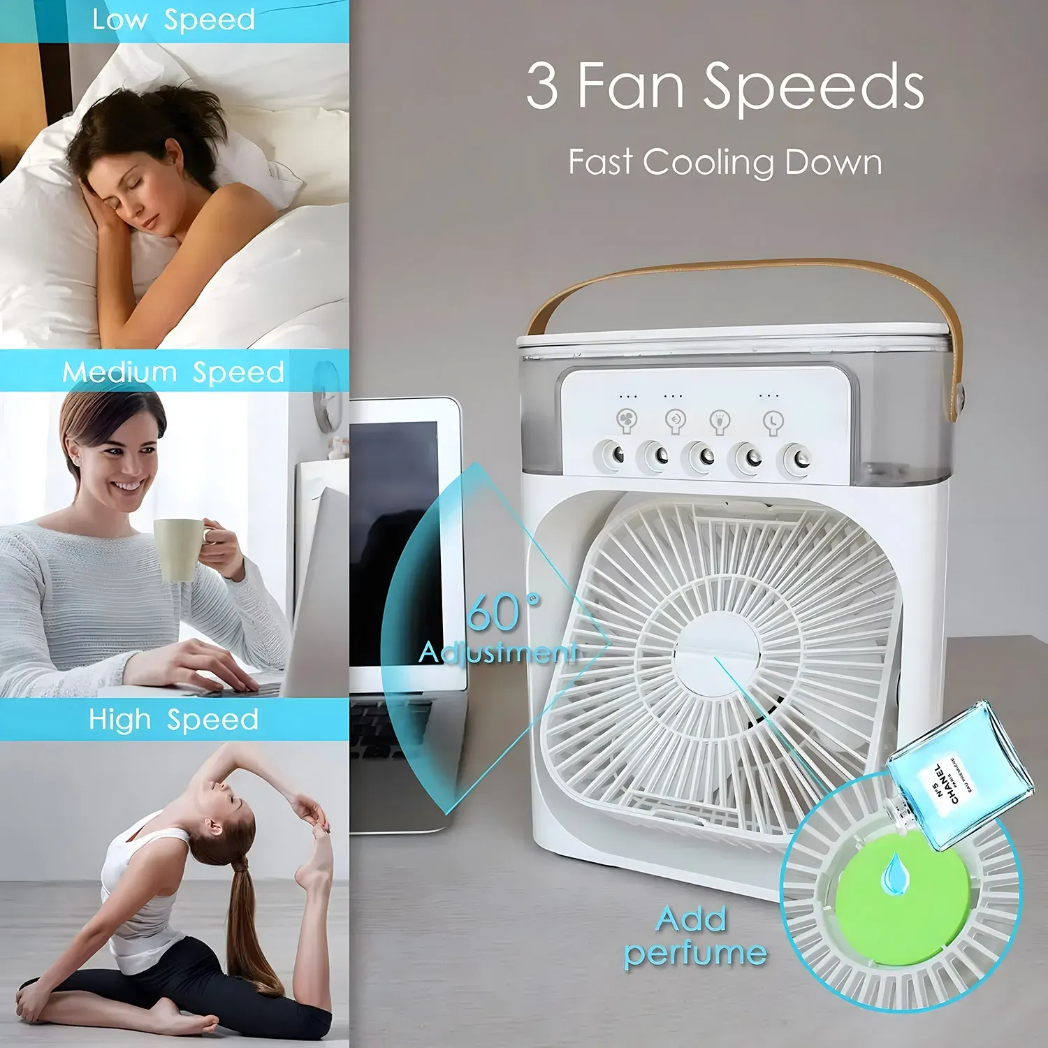 Mini Portable Air Conditioner with 3 Speeds, Cooling Mist, Personal Air Cooler, Cooling Fan, Evaporative Mini Air Conditioner
