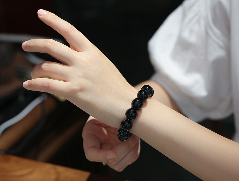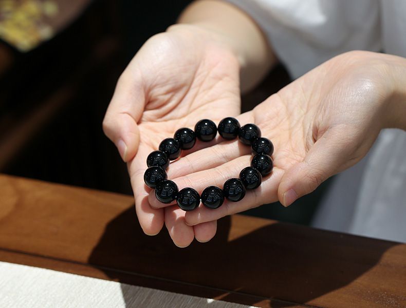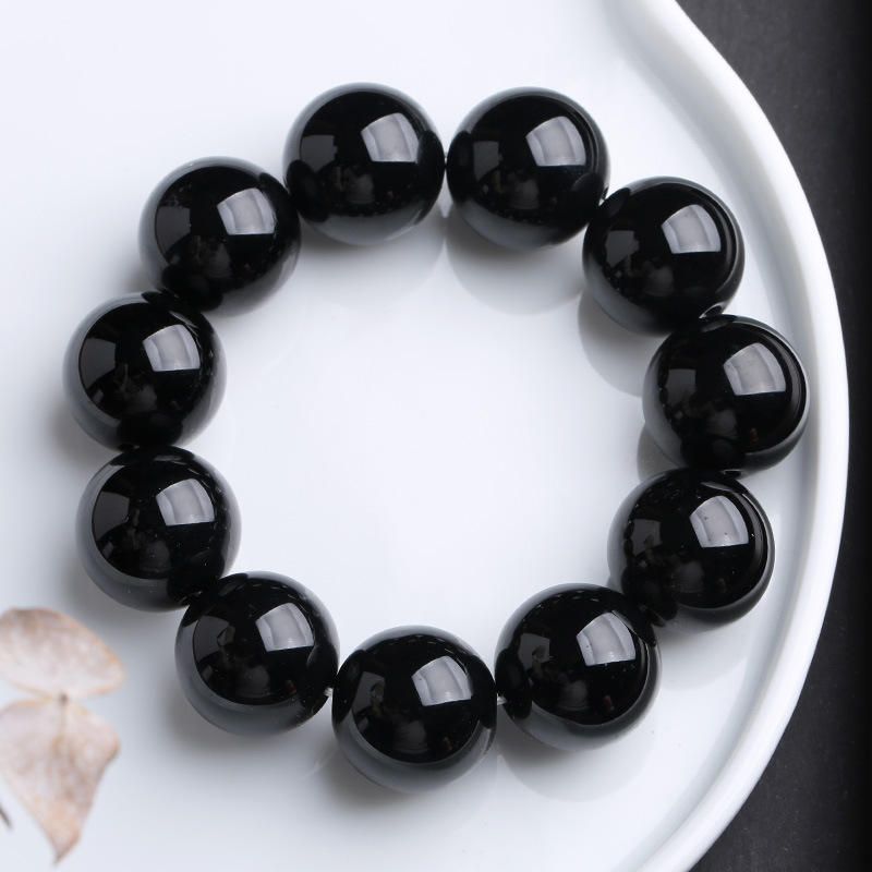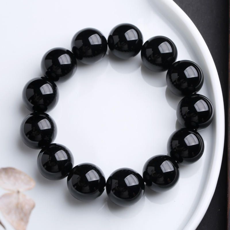 Natural black obsidian agate stone,Dispelling negative energy, attracting wealth and good fortune.