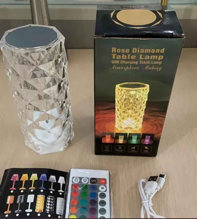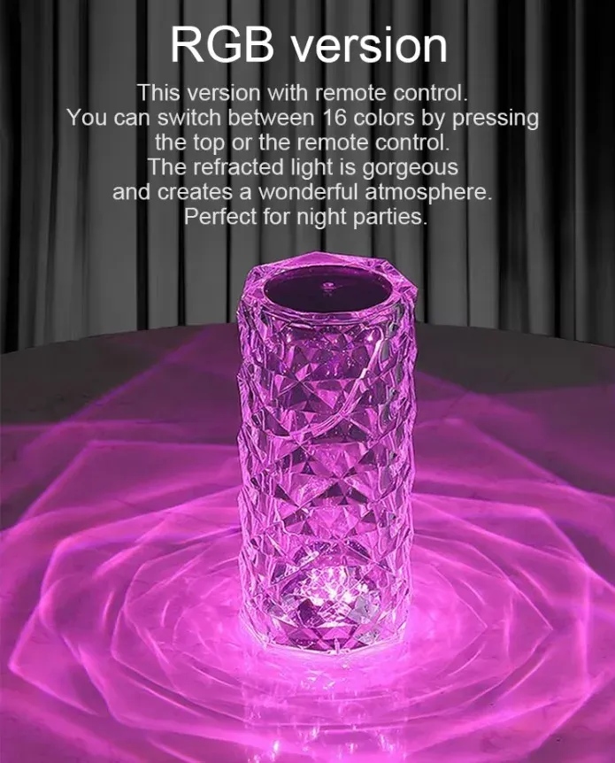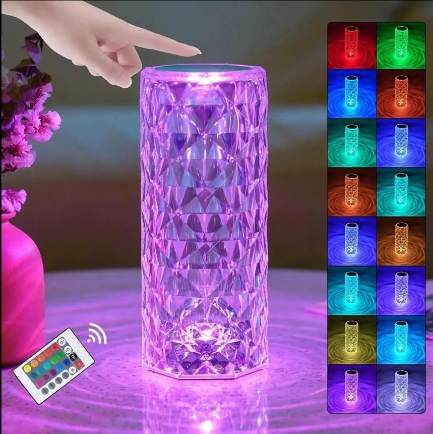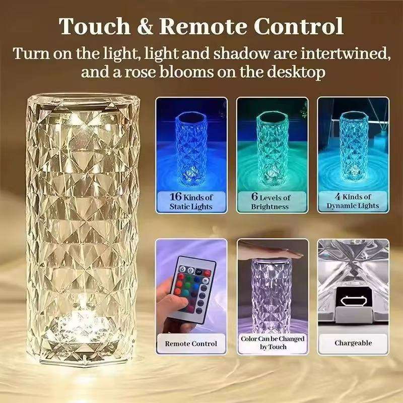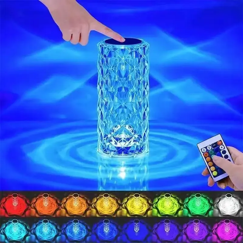 Portable home-use USB flash drive night light, colored acrylic crystal rose LED night light, table lamp with remote control.