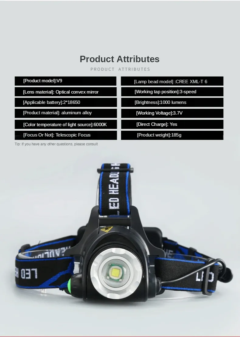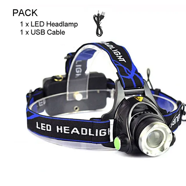 Portable outdoor hunting hiking high-power waterproof emergency USB rechargeable LED headlamp flashlight zoomable headlamp