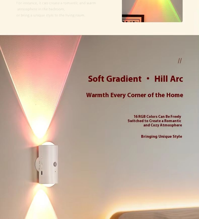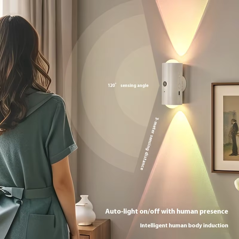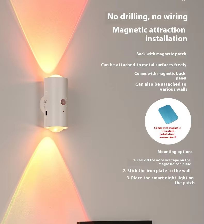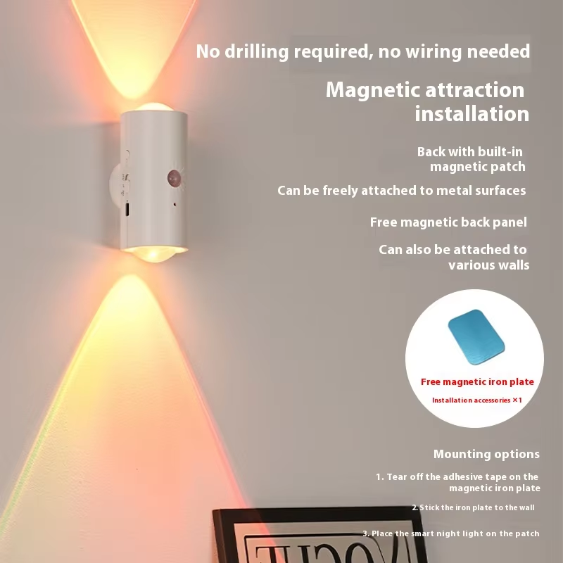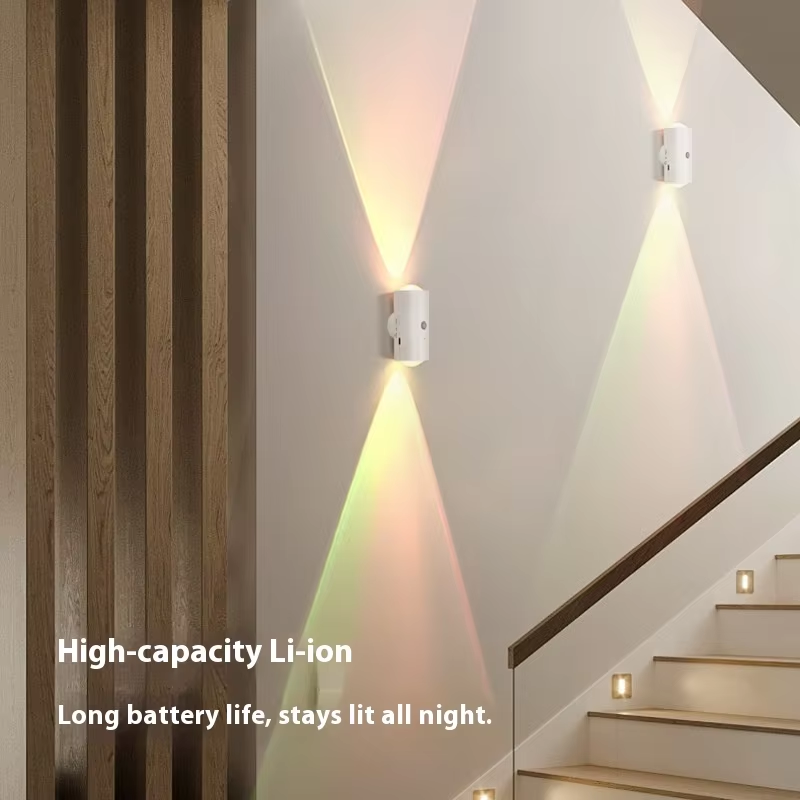 Seven-color LED sensor light, intelligent human body sensor, rechargeable magnetic magic wall light, suitable for staircase lighting.