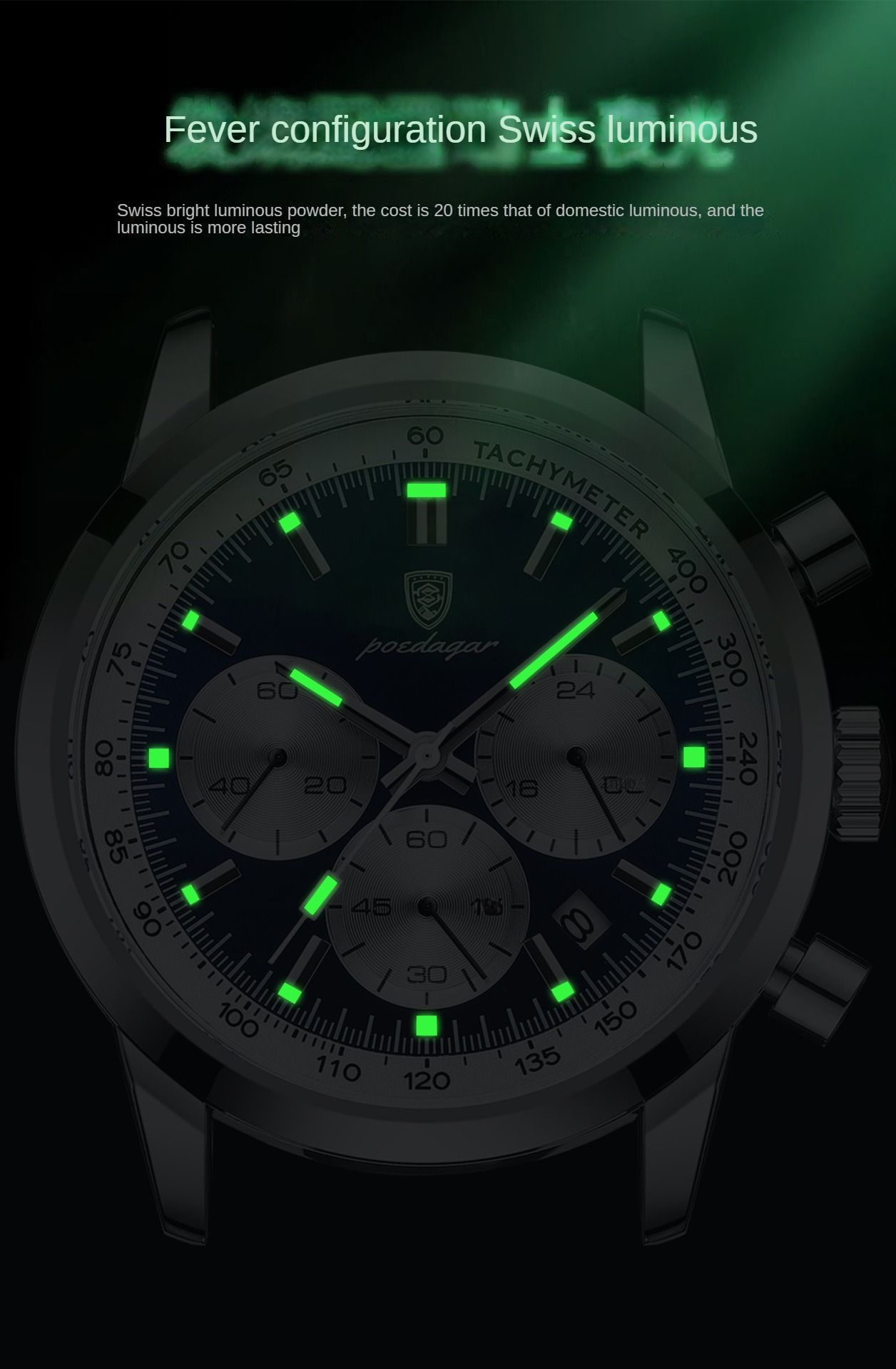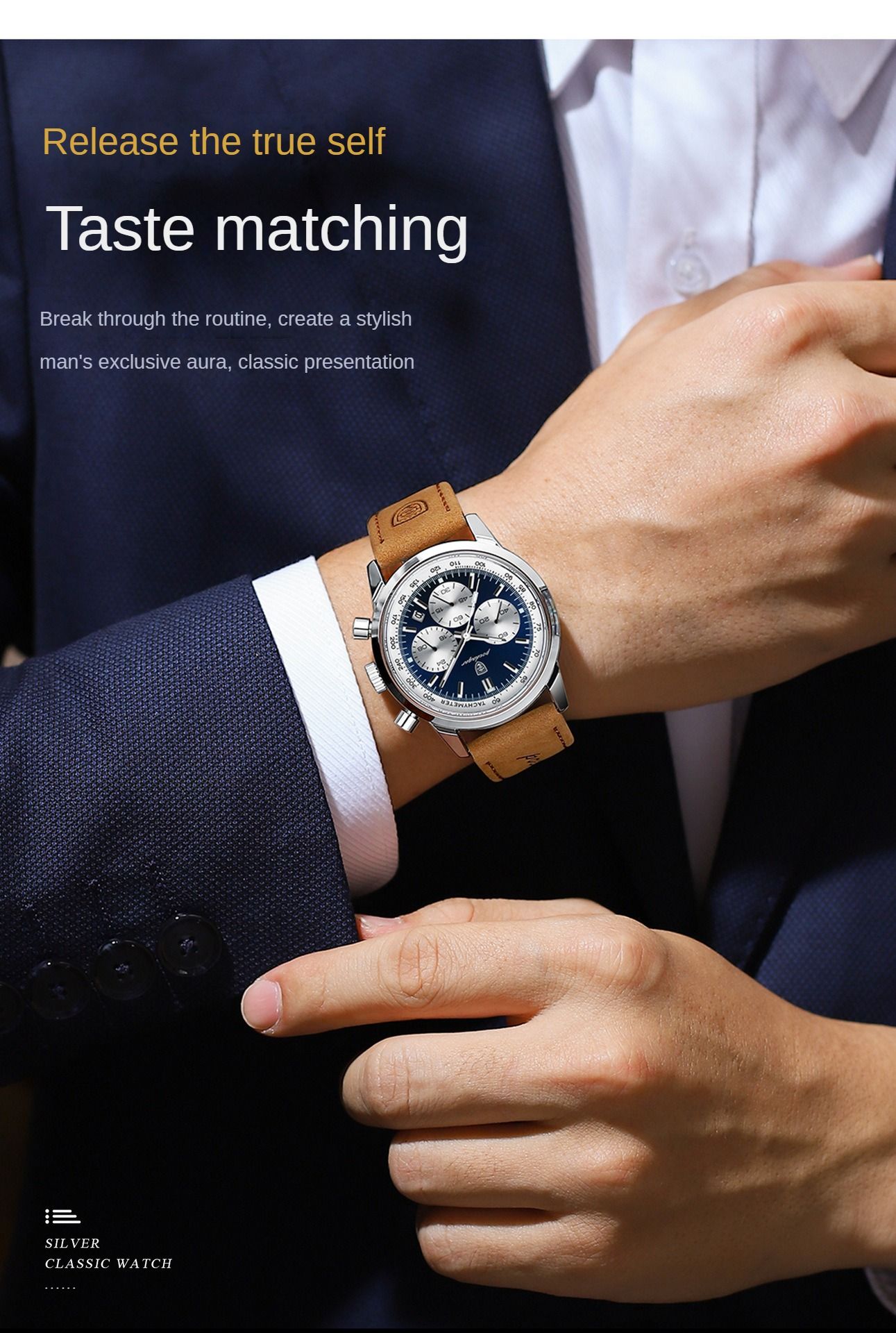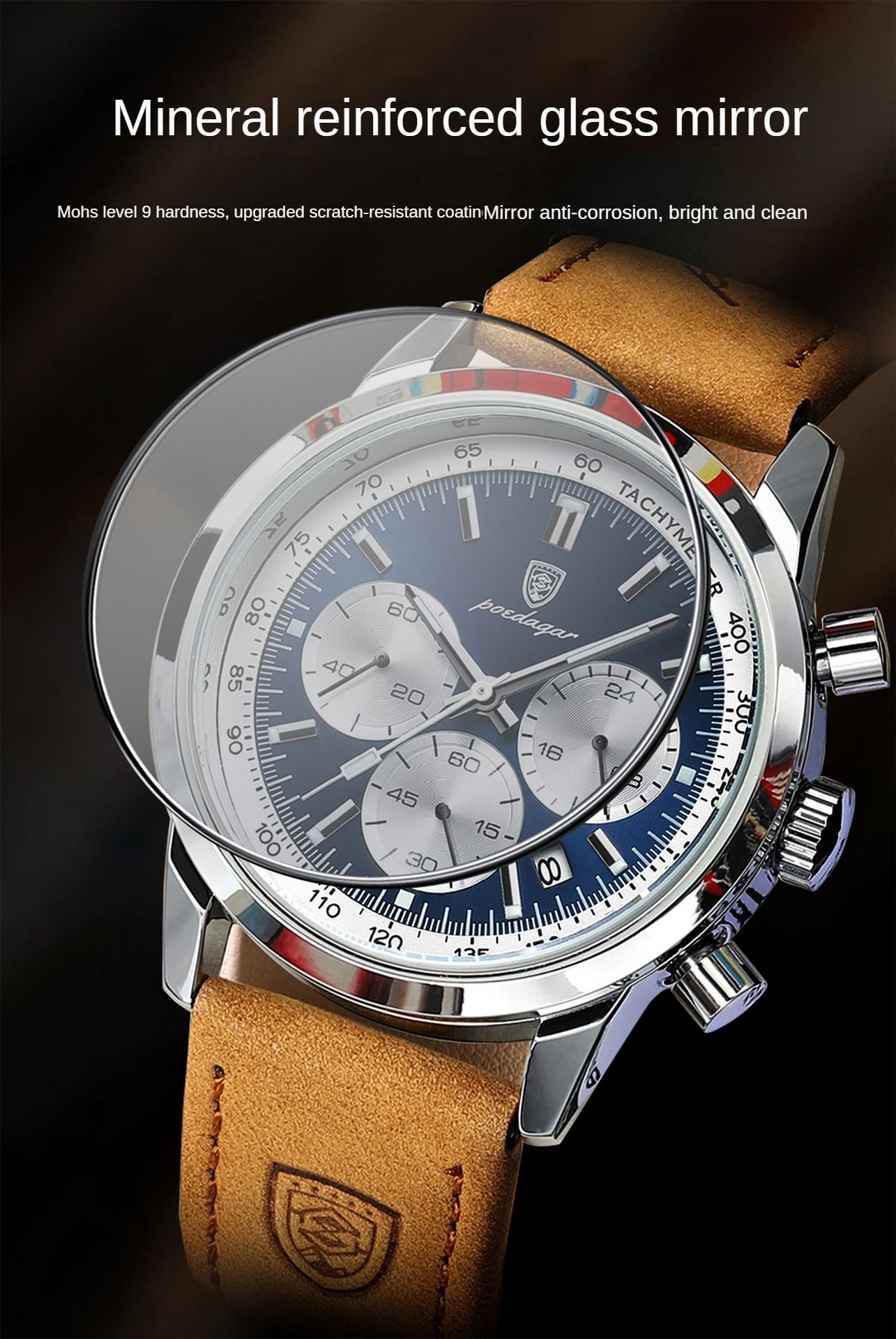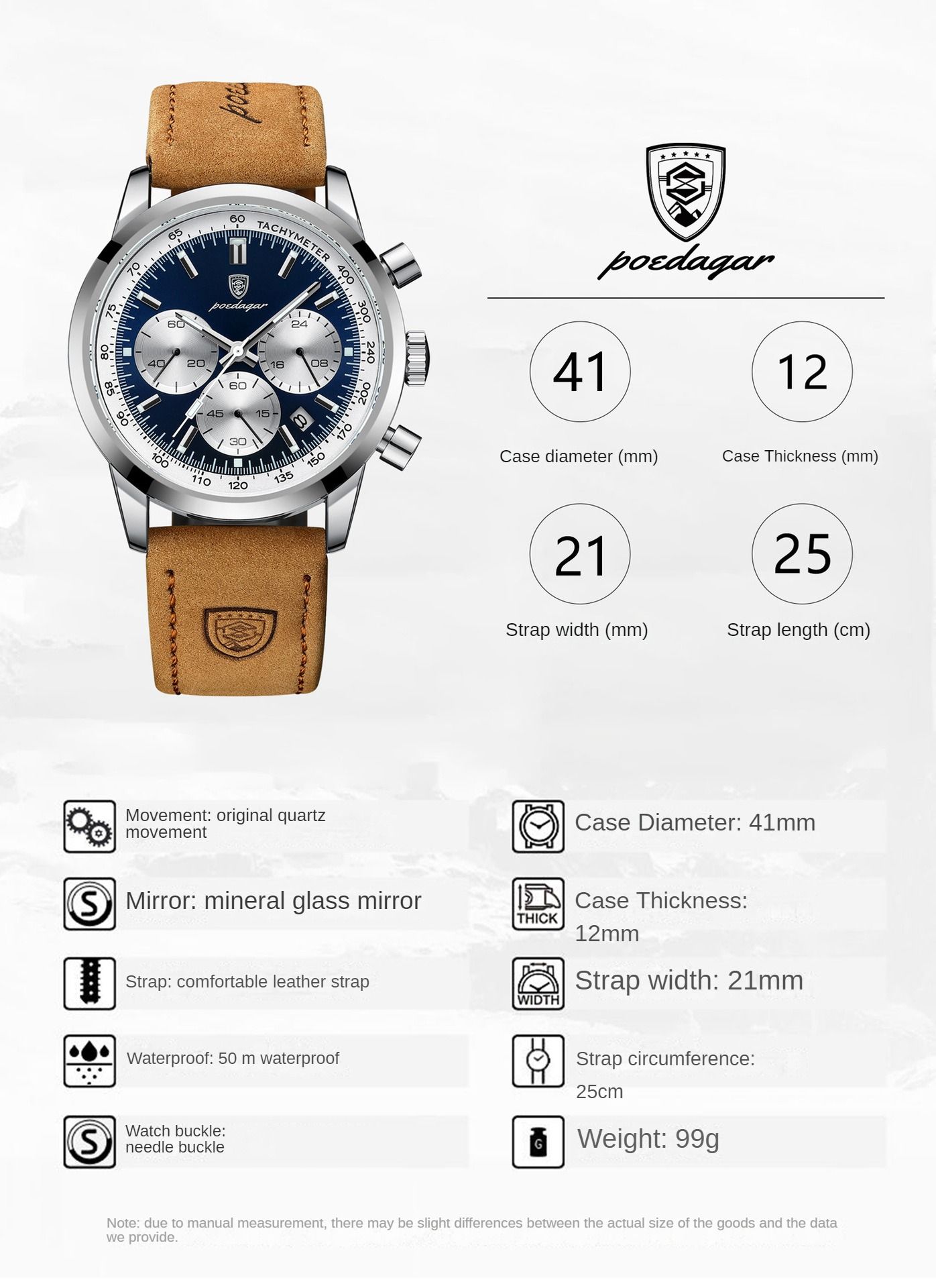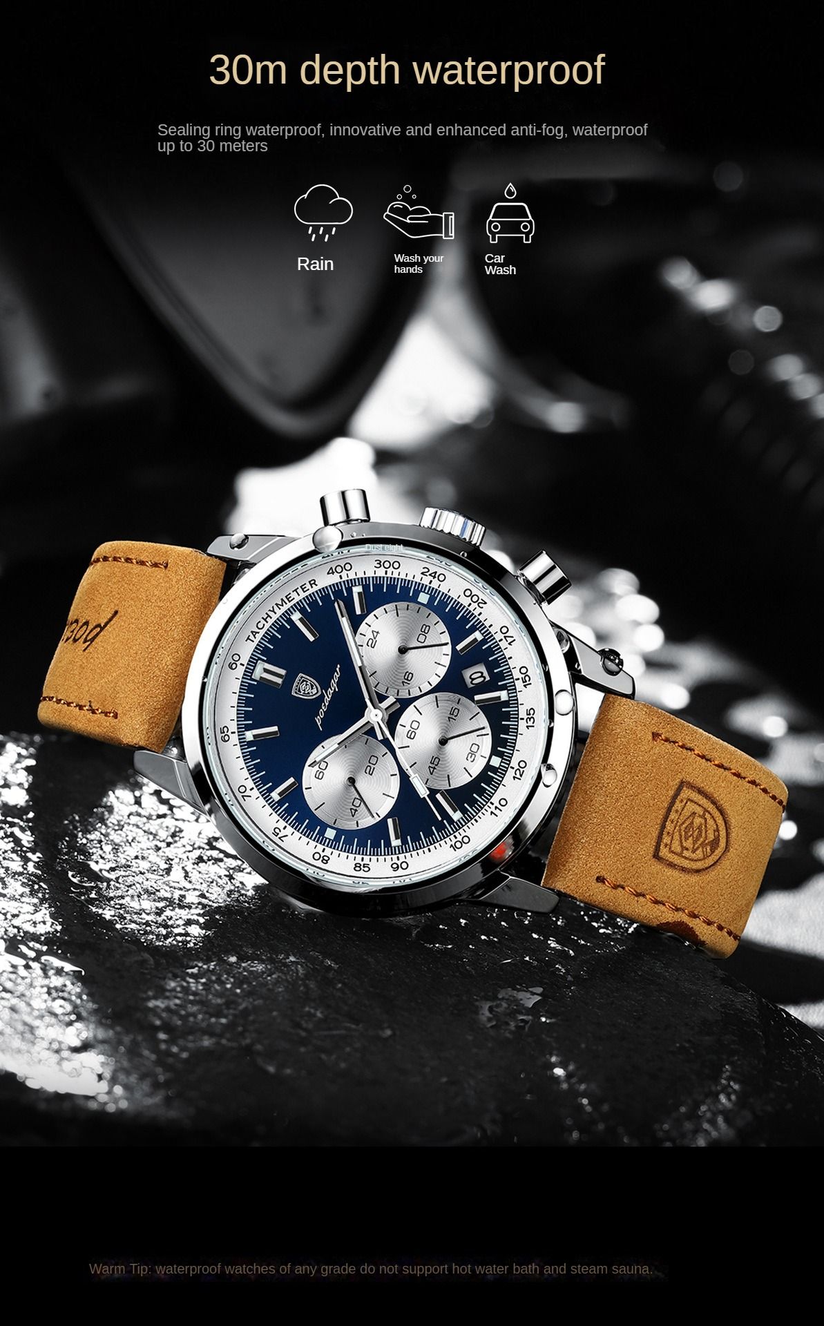 Swiss brand new men's watch with leather strap, multi-functional quartz movement.