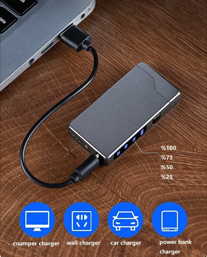 USB Type-C Rechargeable Electronic Cigarette Lighter with Dual-Arc Design and Zinc Alloy - New Product