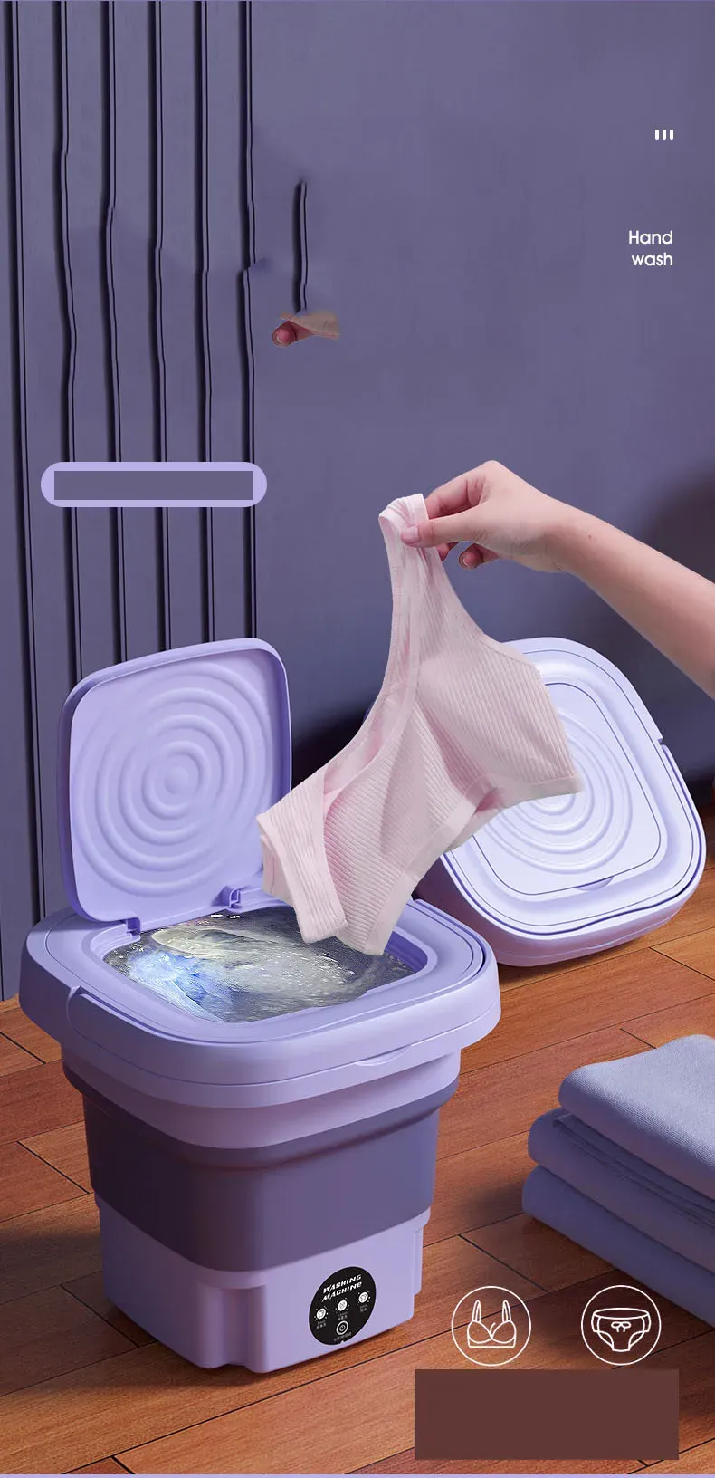 All-in-one mini portable folding washer with dryer