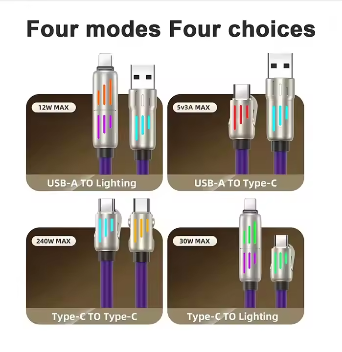 4-in-1 data cable with PD fast charging, two Type-C ports, suitable for charging Apple and Android phones.