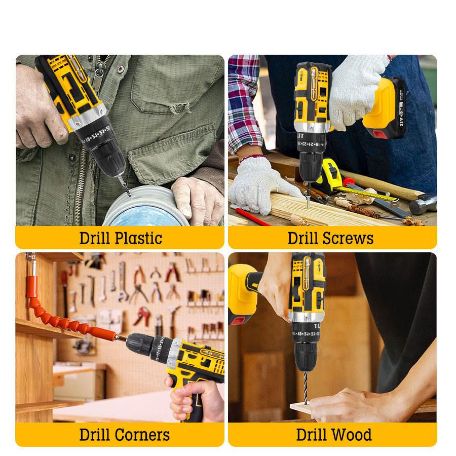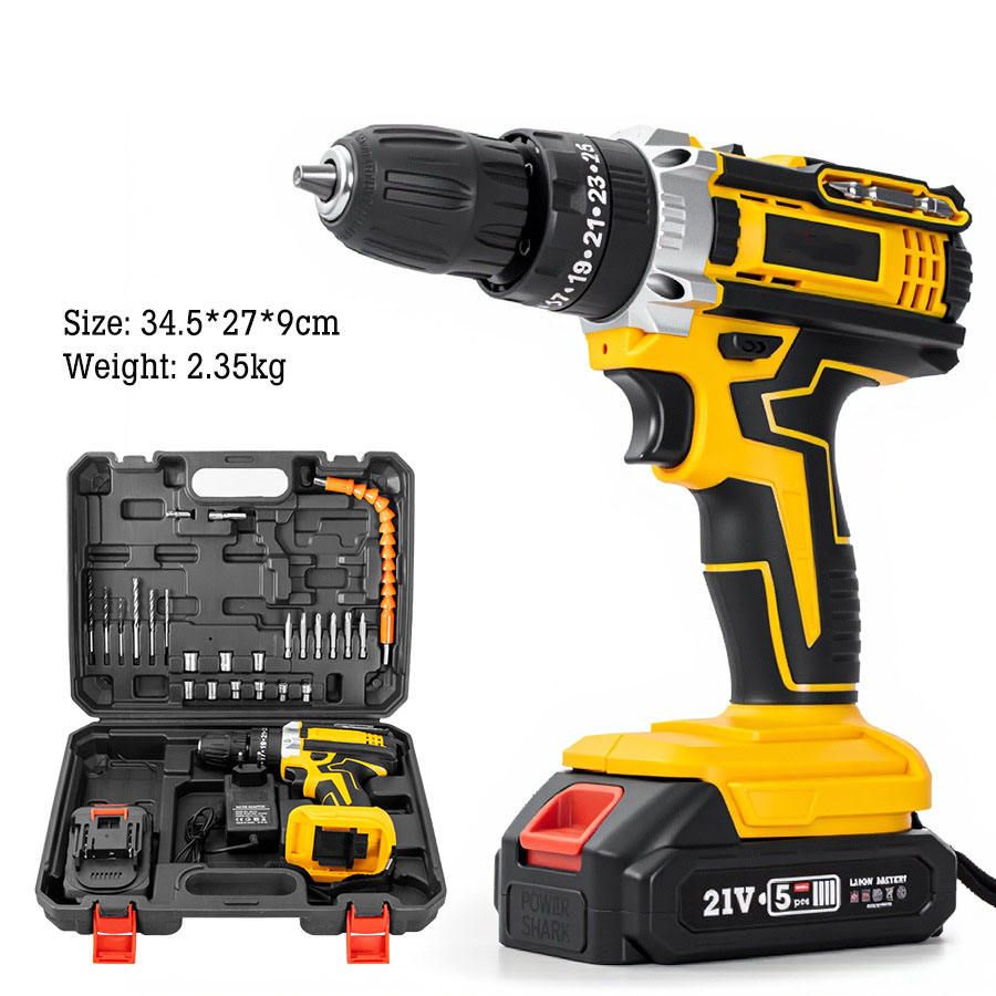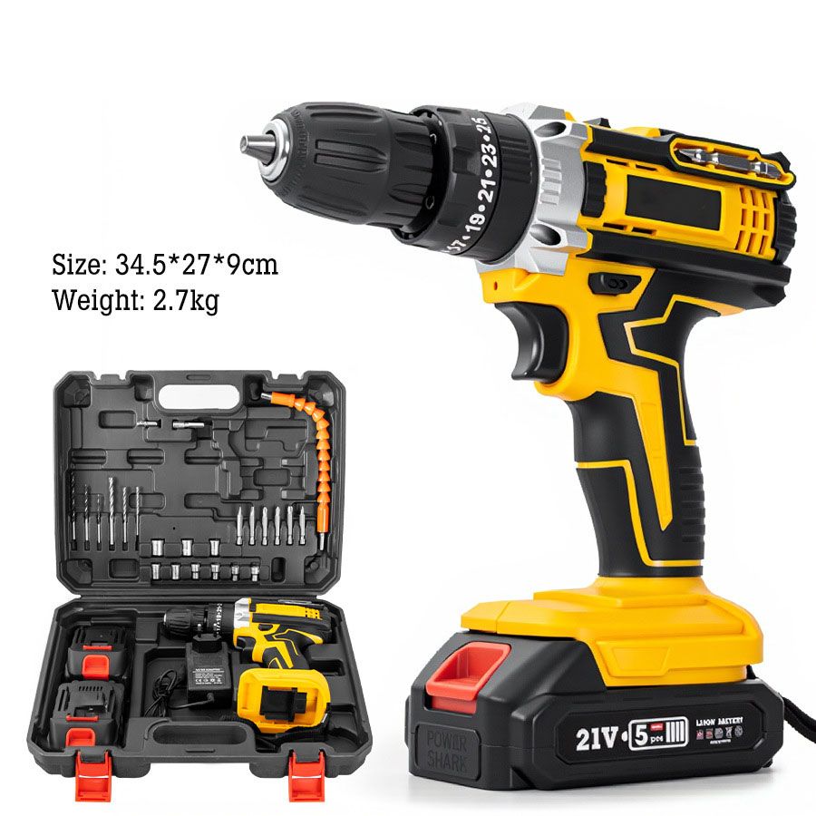 High-power rechargeable electric drill, multi-functional for DIY home and industrial use, with impact function and lithium-ion battery.