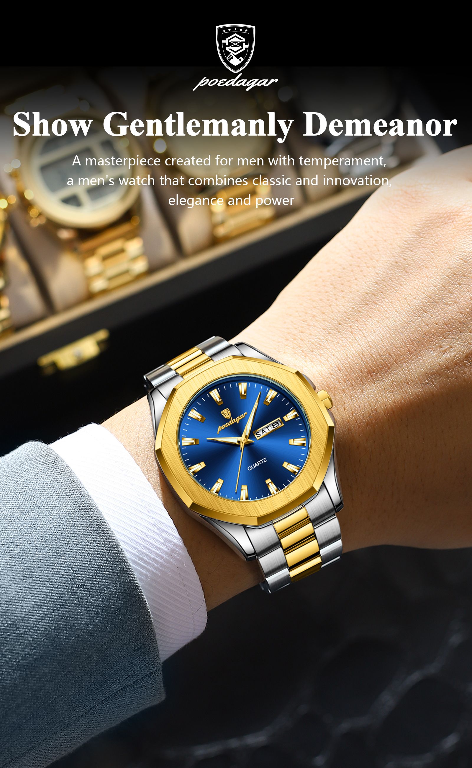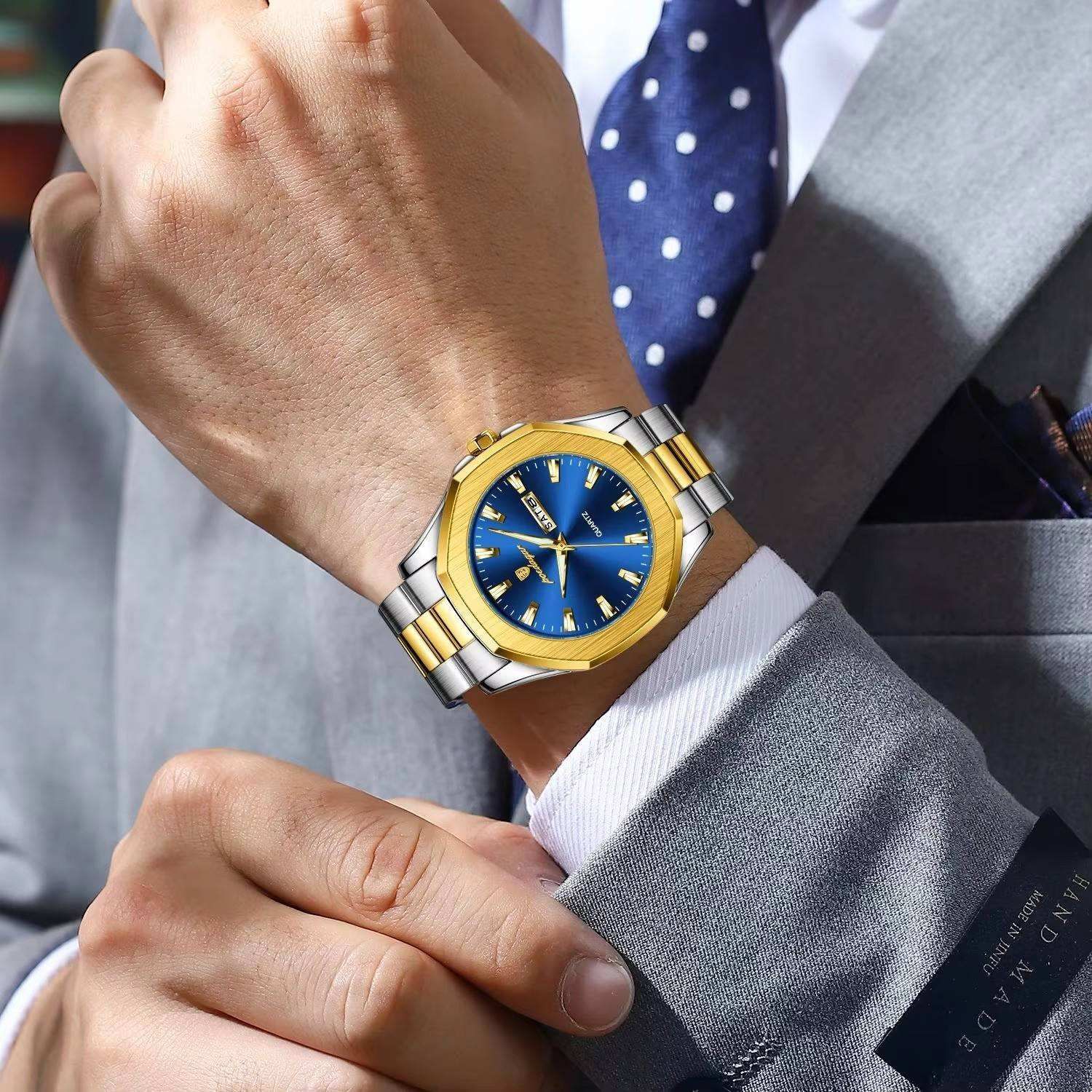 Blue stylish and luxurious men's watch