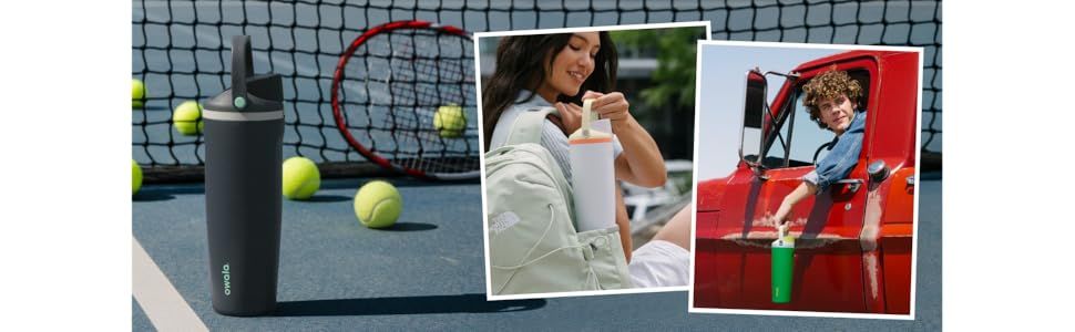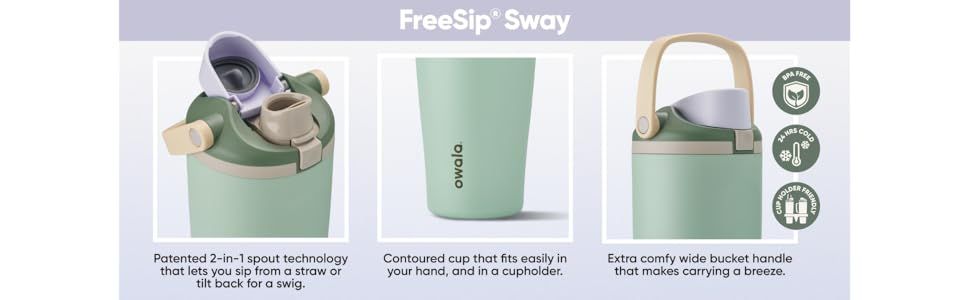 Owala FreeSip Sway Insulated Stainless Steel Water Bottle with Two-Way Spout, Built-In Straw and Bucket Handle, Made for Travel, School, and Sports, 40oz, BPA Free, Leak Proof, Black Cherry