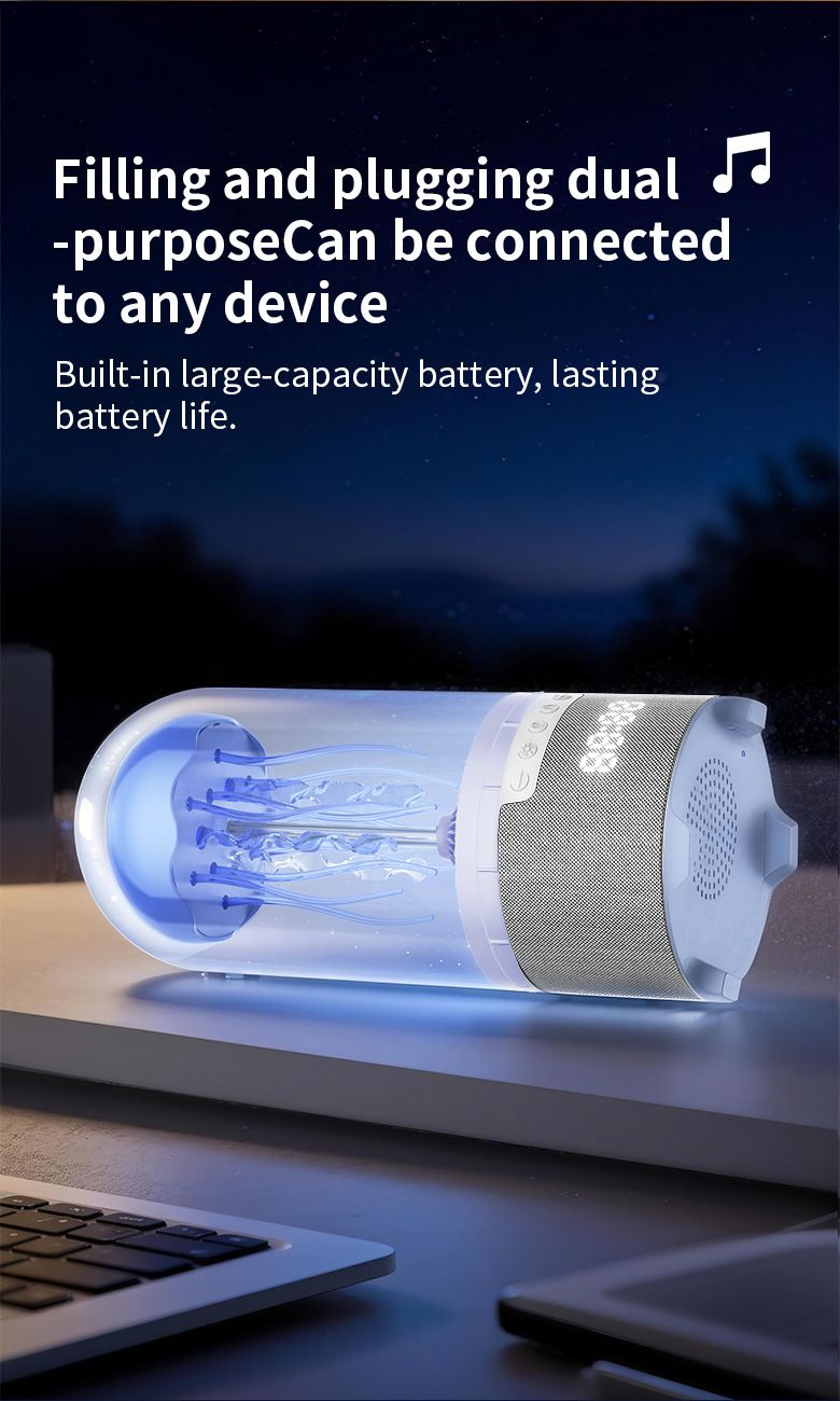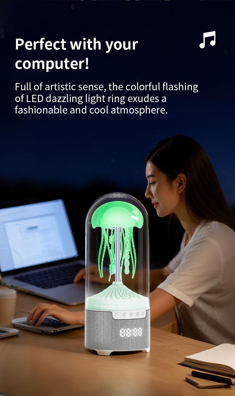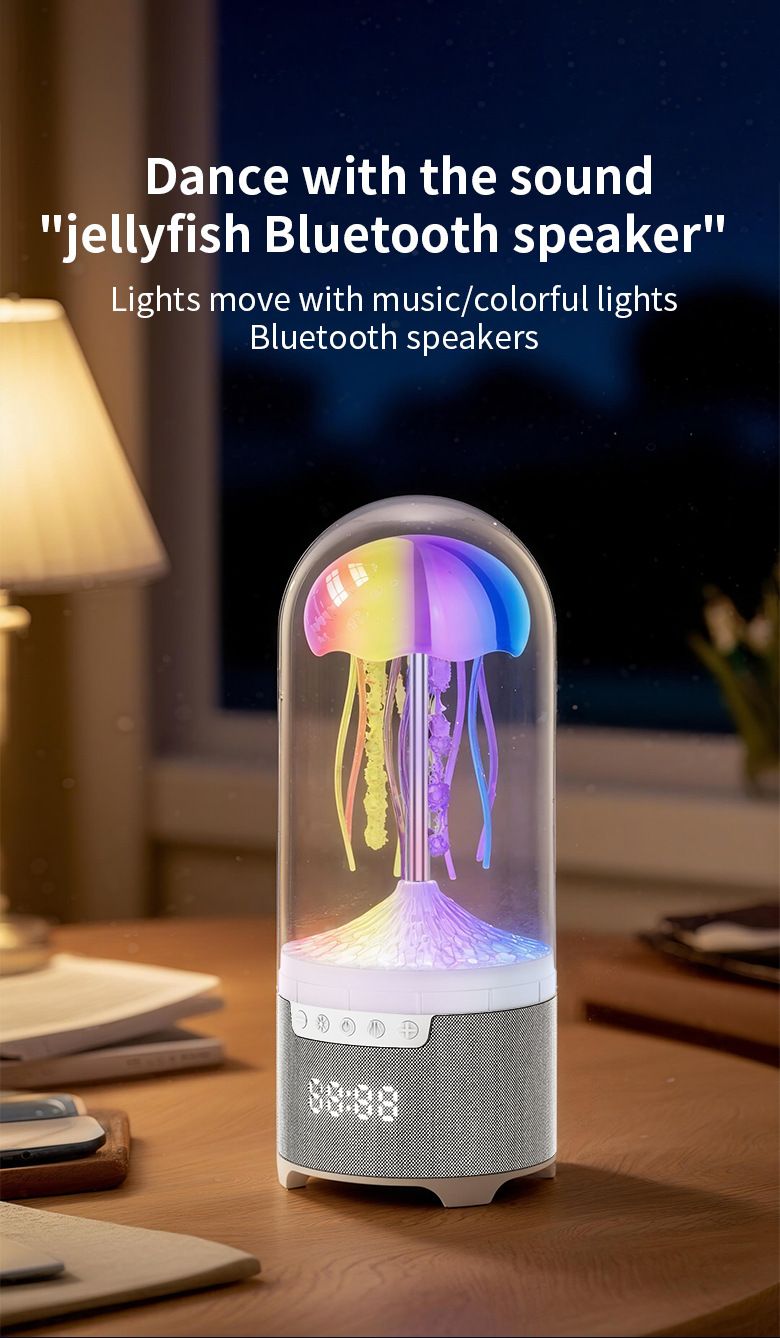 Smart voice-controlled jellyfish lamp, seven-color gradient ambient light, Bluetooth speaker night light, desktop alarm clock wake-up light